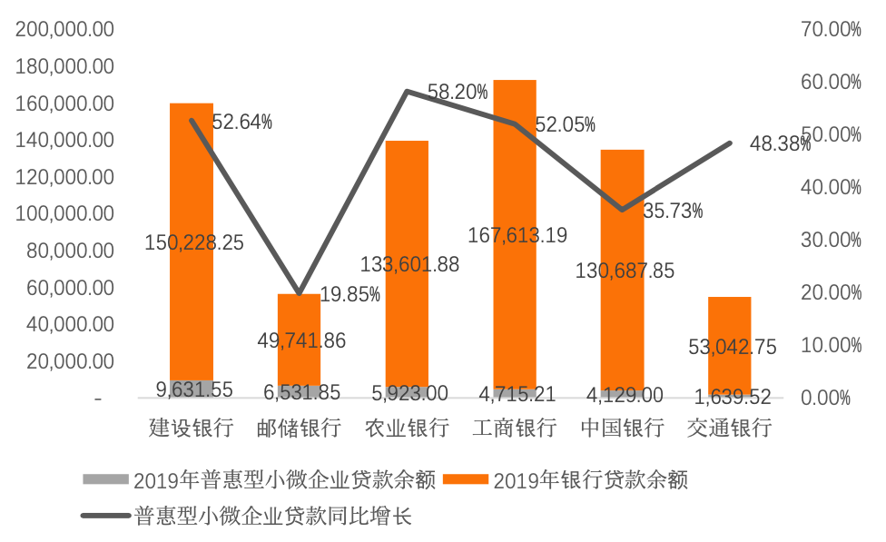图2:2019年6家大型商业贷款余额和普惠型小微企业贷款余额(单位:亿元)