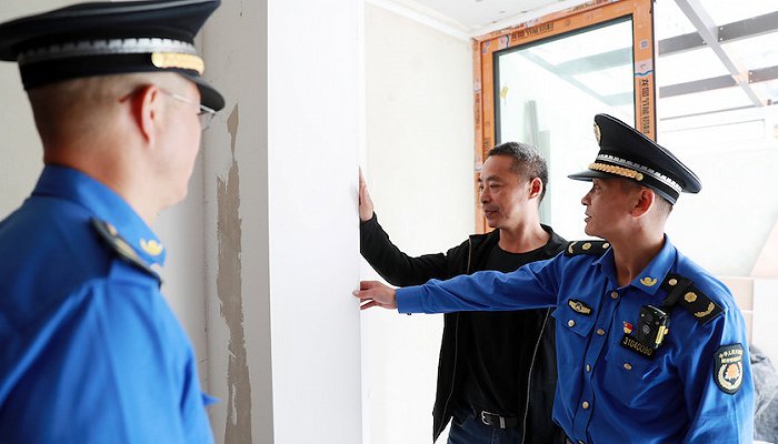 在现场接受处罚的装修队队长陈某告诉记者,这处住宅内生活有一家三代共6口人,为了改善居住环境进行装修。在装修过程中,应业主要求,“削薄”了一处门梁,并且砸掉了一处承重墙。他本人并不清楚这其中的厉害关系。