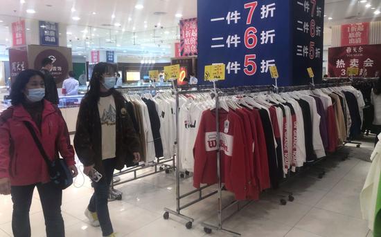 东安市场内,各大品牌服装正在促销。摄影/新京报记者 吴宁