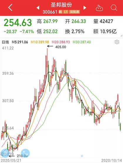近期频频出现大牛股闪崩的情况。昨日,芯片概念龙头圣邦股份大跌13.68%,排在 A股跌幅榜首位,盘中更是一度跌超17%。消息面上看,圣邦股份股价的下跌与一则终止收购钰泰半导体的公告有直接的关系。今天,圣邦股份收盘再跌超7%,两天跌幅超过20%。