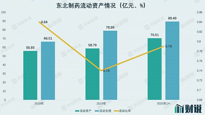 叠加搬迁及新建产线的资本支出,东北制药的财务情况显得捉襟见肘。2018年以来,公司流动比率连续三年低于1,这意味着公司随时面临着无法按期偿还负债的风险。以今年中报为例,在70.51亿元流动资产中,又包含24.66亿元应收款项和13.54亿元存货。东北制药短期的资金缺口比想象中更大。