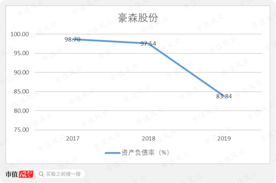 不得不说,豪森股份的资产负债率确实让风云君不禁虎躯一震,菊花一紧:2017年末的资产负债率高达98.70%。