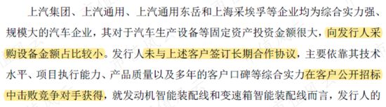 并且,豪森股份主要是通过公开招标获得订单,也并未与上汽集团的这些客户签订长期的合作协议。