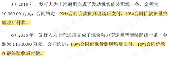 但是,对于上汽集团这位大客户,豪森股份与其签订的合同也几乎全部是采用“091”的结算模式。2017-2019年期间,豪森股份获得的上汽集团的13.21亿元的大额订单中,11.59亿元,也就是将近九成的金额是采用的“091”的结算模式。