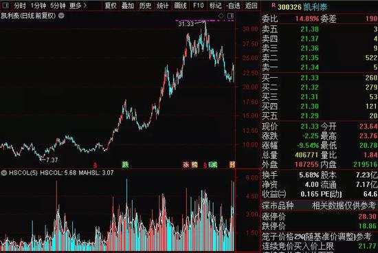 进一步观察发现,医疗器械股跌幅居前,凯利泰出现了放量杀跌,收盘下跌9.54%,收盘21.33元。