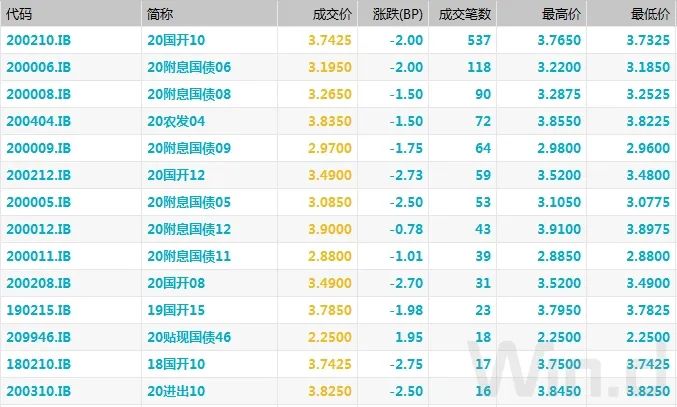 银行间主要利率债收益率下行2-3bp。10年期国开活跃券200210收益率下行2bp报3.7425%,盘中一度下行3bp;10年期国债活跃券200006收益率下行2bp报3.1950%,盘中一度下行3bp。北京一位基金交易员称,数据公布后市场情绪见好,虽然工业和投资数据不错,但大家关注重点在GDP身上。