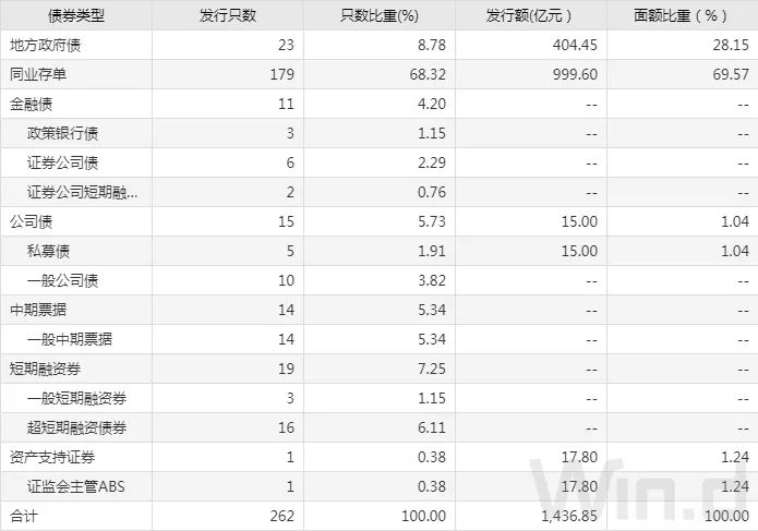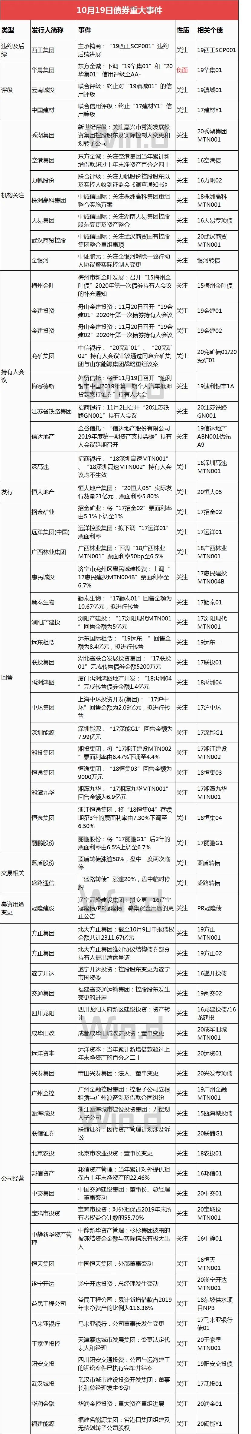 从发债类型看,10月19日,债券市场共发行地方政府债23只,同业存单179只,金融债11只,公司债15只,中期票据14只,短期融资券19只,资产支持证券1只。