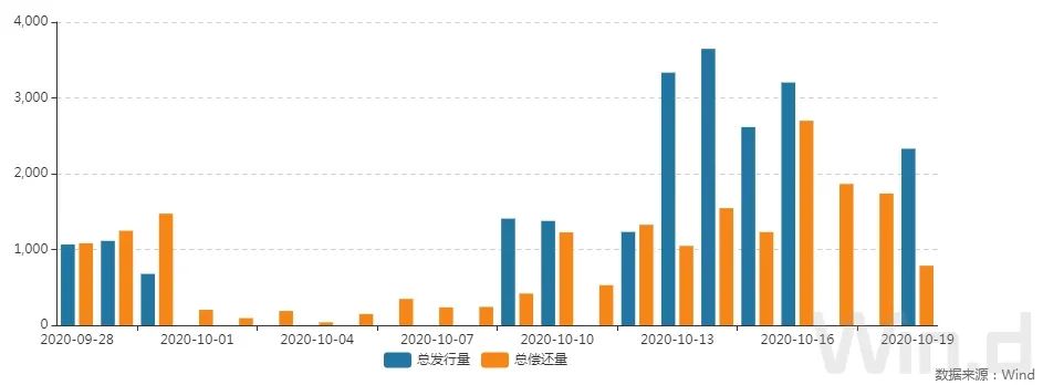 10月19日,债券市场共发行262只债券,总发行量2329.05元,72只债券到期,52只债券提前兑付,3只债券回售,无债券赎回,总偿还量786.29亿元,当日净融资额为1542.76亿元。