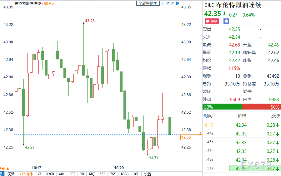 北京时间16:19,NYMEX原油期货下跌0.49%至40.86美元/桶;ICE