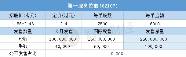 第一服务控股一手中签率10% 最终定价2.4港元