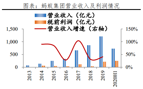 截至2020年上半年,蚂蚁营业收入725.28 亿元,净利润219.23亿元,仅仅半年已经超过了去年全年利润。
