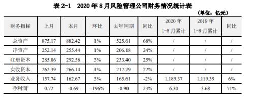 根据中期协发布的期货公司风险子公司业务报告显示,今年前8个月,期货公司风险管理公司业务,净利润同比增长达到71%,利润总额从去年同期的3.68亿元,上升到了6.3亿元,增长凶猛!