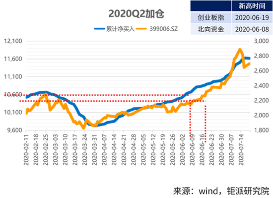 2020年在新冠疫情的影响下,全球都在进行“大放水”、“强刺激”的财政政策和货币政策的结合,使得3月市场在快速下跌后出现上涨迅猛的行情。在这过程中,创业板在6月19日创新高,而北向资金在6月8日先行创下了新高。这说明,北向资金在顶部盘顶的时候预知了风险先行撤离,同时在上攻的阶段看到了市场往上的趋势并果断地加仓。