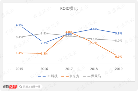 近五年,公司的ROIC基本处于行业前列,2019年为3.8%。