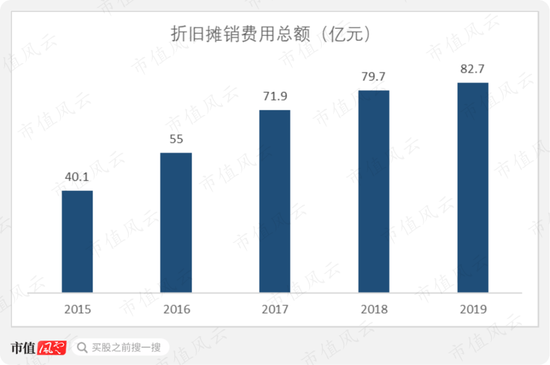 2019年公司折旧摊销费用总计82.7亿元,占当期收入的11%。