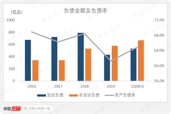 新生产线不断扩张依靠大量的外部融资,公司债务在2019年资产重组后负债率有所下降,负债结构发生了改变,非流动负债开始超过流动负债。