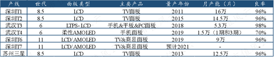 截至2020年9月,公司拥有LCD和AMOLED产线共7条,总产能位居国内第二,具体情况如下。