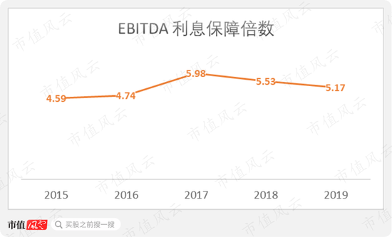 2019年底公司EBITDA利息保障倍数为5.17,总体来看公司债务违约风险不大。