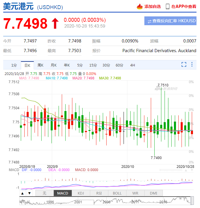 据了解,10月28日,为维持7.75兑1美元强方兑换保证,香港金管局在纽约市场尾段,再度承接美元沽盘,沽出63.78亿港元;10月27日已向银行系统累计注入318亿港元。