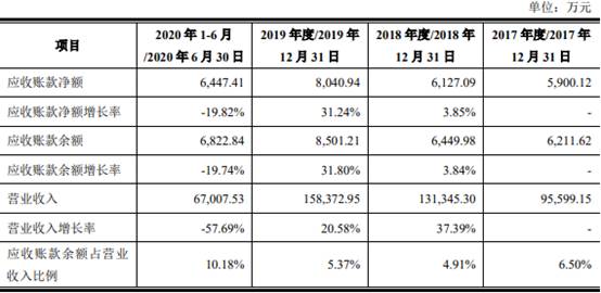 报告期各期末,立高食品应收账款余额分别为6211.62万元、6449.98万元、8501.21万元和6822.84万元,应收账款余额占营业收入比例分别为6.50%、4.91%、5.37%、10.18%。
