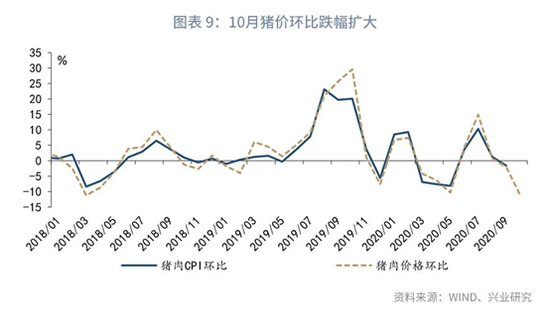 在消费品方面,10月猪肉价格环比跌幅扩大,蔬菜价格环比由涨转跌。同时,10月CPI翘尾将较9月下降0.9个百分点,对CPI同比的拖累较大。总体来看,10月CPI同比可能下降至0.4%。