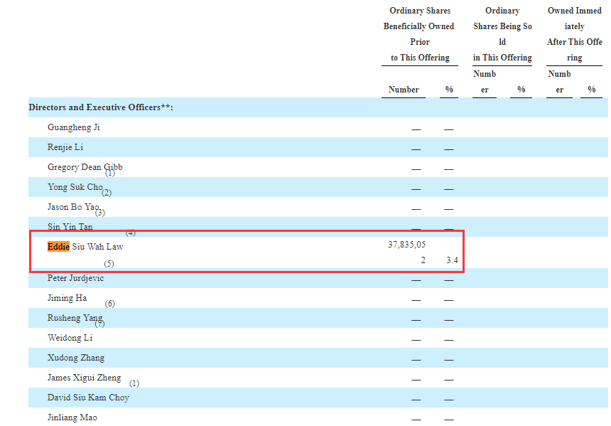 有意思的是,在陆金所的董事会成员中,仅有一人单独持股——董事Eddie Siu Wah Law 。