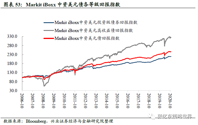 MarkitiBoxx非金融企业中资美元债回报指数跌0.22%至220.9;投资级回报指数跌0.08%至216.4;高收益回报指数跌1.62%至233.8。