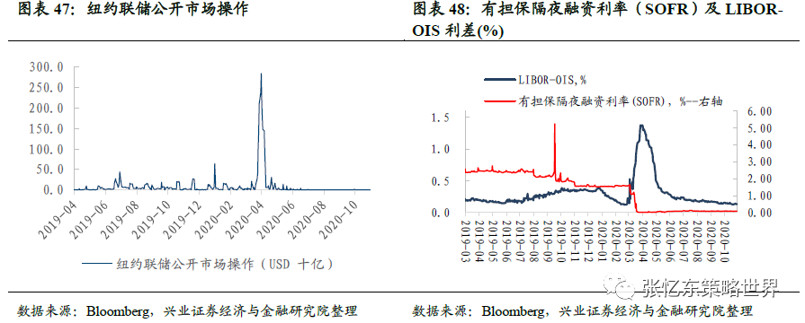 货币市场利率。截至10月30日,有担保隔夜融资利率(SOFR)为0.09%,略高于上周五的0.08%;LIBOR-OIS利差为0.13%。