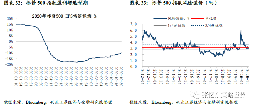 风险溢价水平和盈利预期:截至10月30日,标普500指数2020年预期EPS增速为-10.0%;本周五,股权风险溢价为3.1%,高于上周的2.9%,处于2010年11月以来的中位数附近。(注:股权风险溢价=标普500市盈率倒数-十年期国债收益)。