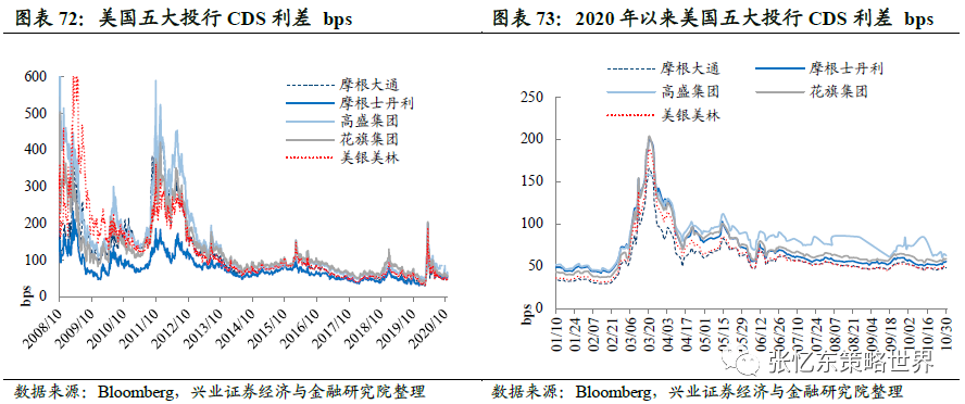 美国投行CDS利差:相较于上周五,摩根大通上升2.5bp至48.2bps,摩根士丹利上升4.2bp至55.5bps,花旗集团上升3.5bp至58.7bps,美银美林上升1.4bp至48.1bps。