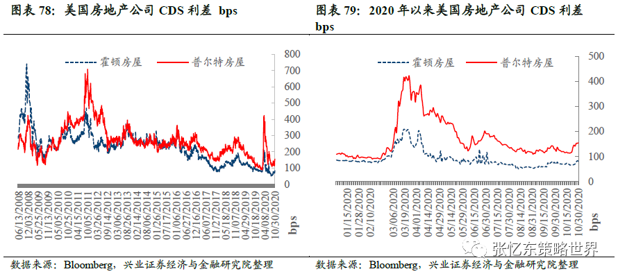 美国房地产公司CDS利差:相较于上周五,本周霍顿房屋公司CDS利差上升15.3bp至81.5bps,普尔特房屋公司CDS利差上升17.1bp至154.6bps。
