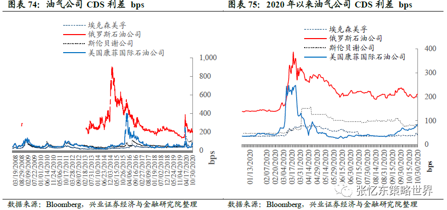 油气公司CDS利差:相较于上周五,埃克森美孚利差上升1.7bp至40.1bps;俄罗斯石油公司CDS 上升16.0bp至210.3bps; 斯伦贝谢公司CDS下降3.5bp至77.0bps; 美国康菲CDS上升15.8bp至82.5bps。