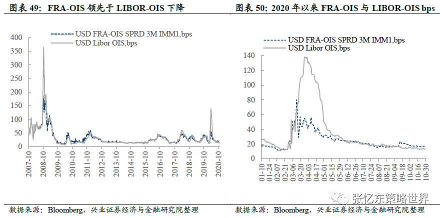 截至10月30日,相较于上周五,FRA-OIS上升0.4bp至17bps,LIBOR-OIS上升0.1bp至13.4bps。