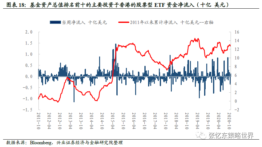 根据彭博口径统计,本周主要投资于香港的股票型ETF基金中,基金资产总值前十大ETF净流出资金1.2亿美元。
