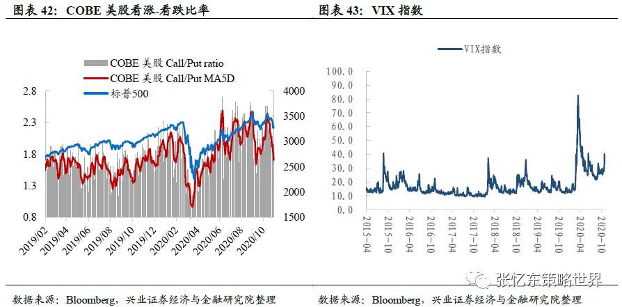 VIX指数仍处于历史高位水平。截至本周五,VIX指数从上周五的27.6升至38.0,处于2014年7月以来的97%分位数水平。