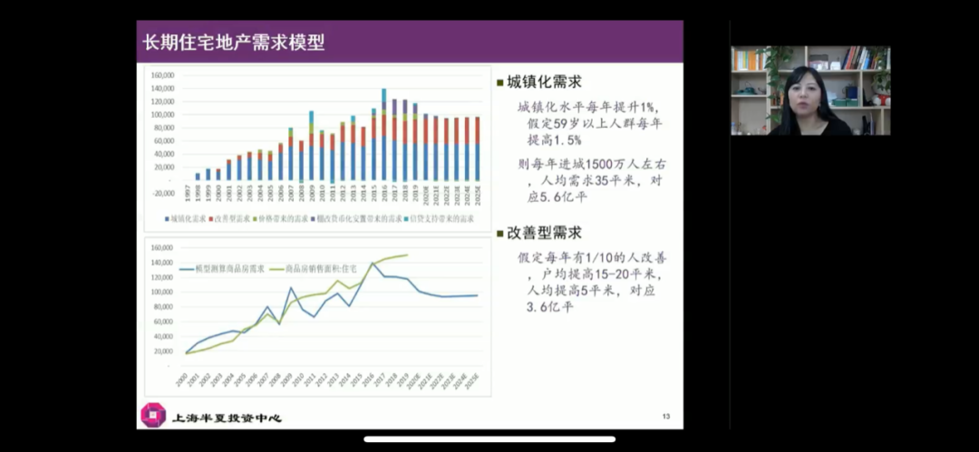 首先看长期住宅地产需求模型。城镇化需求+改善性需求,按照一定的假设去测算(假设的还是很合理的,比如年轻人的城镇化更高,每10年改善性换房)。