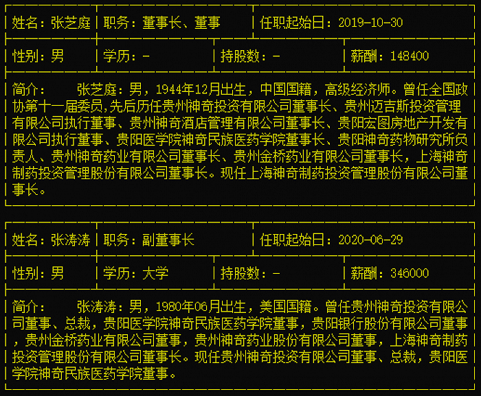 回顾2019年11月份,或也正是忧心于公司的经营,古稀之年的张芝庭再度出山任职董事长,法定代表人同时也进行了变更。而就在3年前,张芝庭曾因身体原因辞去了董事长职务。前董事长张涛涛为张芝庭之子,现在则为神奇制药的副董事长。
