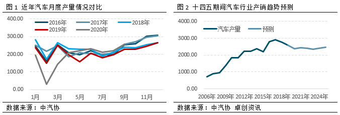 2020年汽车行业消费受到新冠疫情影响较大,普通居民有意减少大件消耗品的购入,对汽车消费明显呈现谨慎状态。汽车消费与居民收入预期成正比,伴随着未来经济下行压力的增大,汽车行业依旧承压,预计十四五期间汽车产销量将整体呈现下降趋势。载货汽车销量大幅增加新能源车表现不佳。