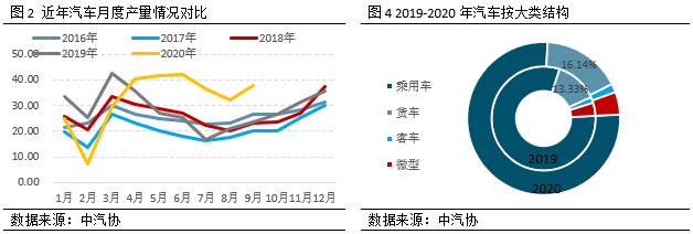 根据汽车工业协会公布数据,2020年货车产量占汽车总产量的比值由13.33%提升至16.14%,乘用车占比由80.81%下降至73.93%。