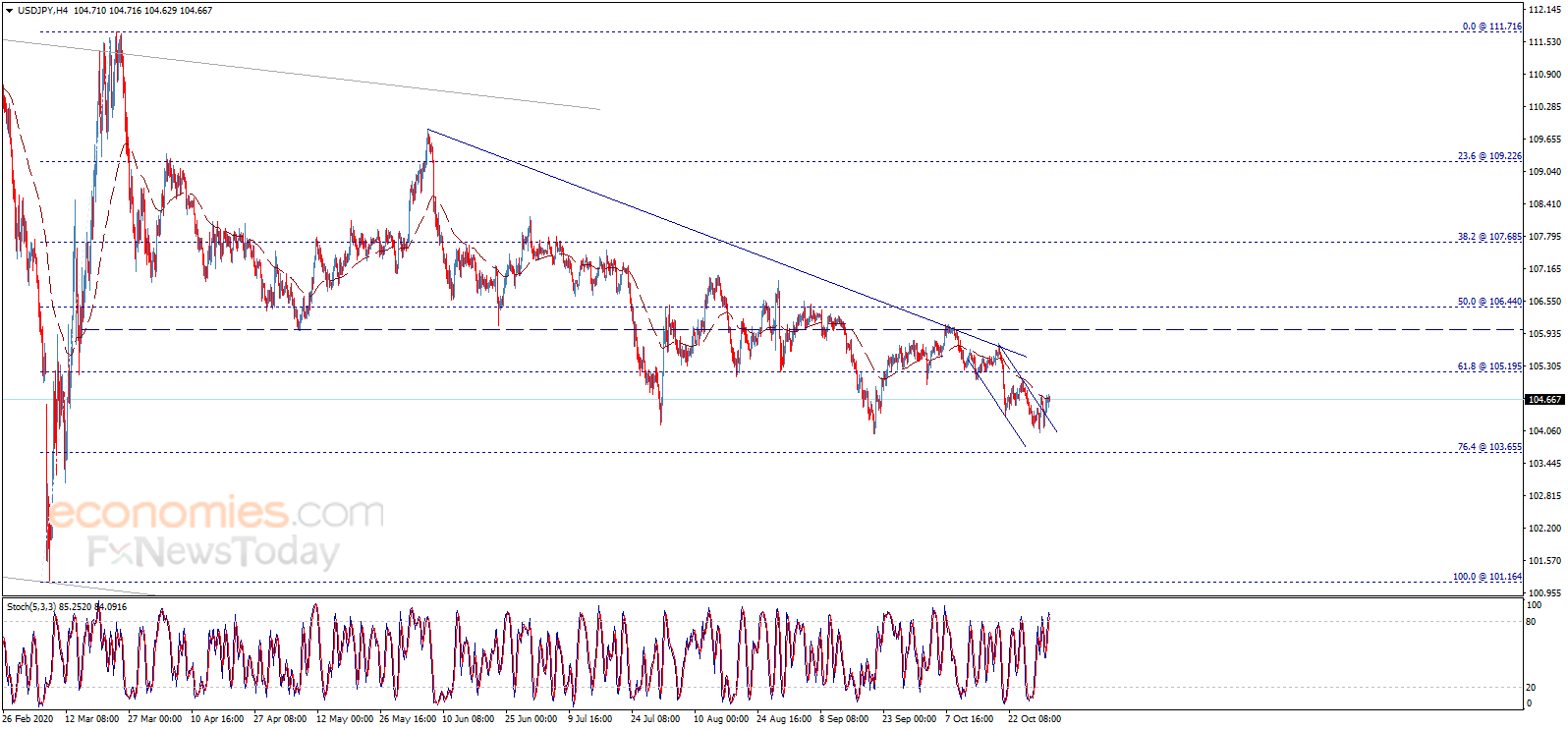 预计今日美元/日元交投将位于支撑位103.90以及阻力位105.2之间。