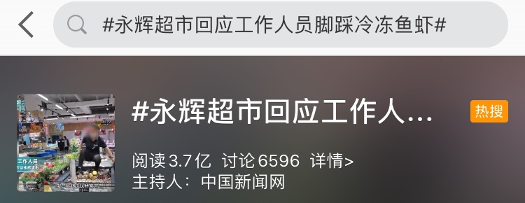 play向前向后员工脚踩冷冻鱼虾上热搜 永辉超市道歉了