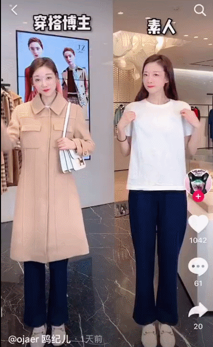 比起其他专场主播开播前喊话“卖空这栋楼”的预热风格,鸥纪儿的预热视频通常是以穿搭教学为主,更有特色,也能让人对品牌产生兴趣,在抖音上引起了许多服装账号的跟风模仿。