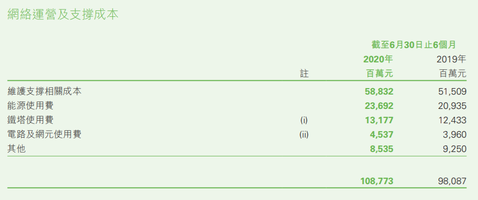 先来看运营商财报数据:2019年是5G商用元年,当年中国移动“动力水电取暖费”为328.37亿元;到了2020年上半年,中国移动的能源使用费已经升至236.93亿元,同比上涨13.2%;与之相对的是,网络运营及支撑成本的整体涨幅仅有10.7%。