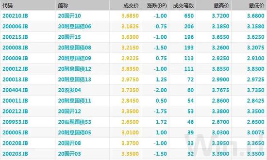 银行间主要利率债收益率下行约1bp,中短端政金债仍受捧。10年期国开活跃券200210收益率下行1bp报3.6850%,盘初一度上行2.5bp最高触及3.72%,10年期国债活跃券200006收益率下行0.75bp报3.1625%,盘初一度上行1.5bp最高触及3.1850%。