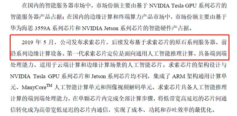 不过,公司在报告期内尚未对求索芯片进行单独销售,而是基于求索芯片研发智能服务器及智能边缘计算设备并对外销售。目前已有多家算法公司将自有的人脸识别模型、车辆识别模型迁移到基于求索芯片的智能服务器上,且运行良好。