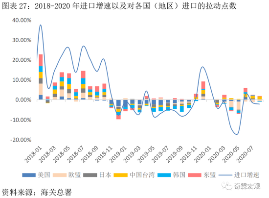 其中,对美国进口增速反弹幅度最大,从1.8%提升到24.8%,这很大程度上受益于中美第一阶段贸易协议的加快履行(包括大豆等农产品、能源类产品等进口都在加快)。