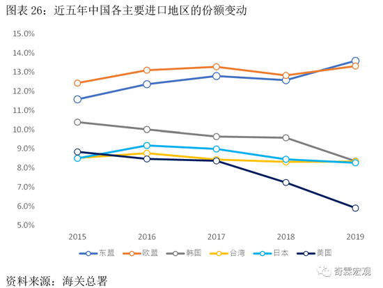 但21世纪以来,加工贸易占比在逐渐萎缩,而一般贸易占我国进出口比重则逐渐上行。这个趋势在2008年金融危机以来变得越来越明显。