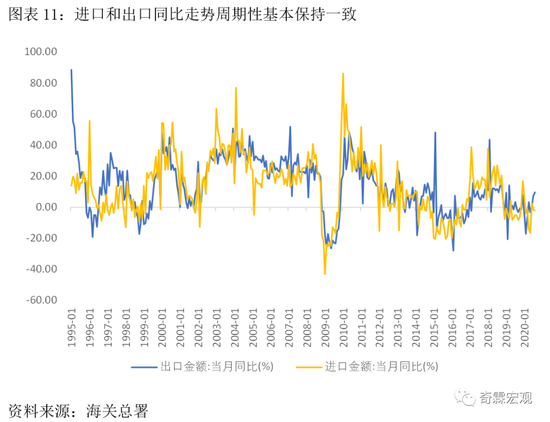 但总体而言,两者的增速走势非常接近。如果只考虑货物贸易的话,我们看时间序列更长的海关数据就够了。