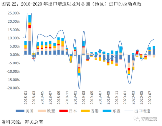 在防疫物资、部分线上办公用品等比较关键的出口项走弱的情况下,我国出口增速却依旧保持着向上的动力,侧面说明外需正在经历更普遍的回暖。