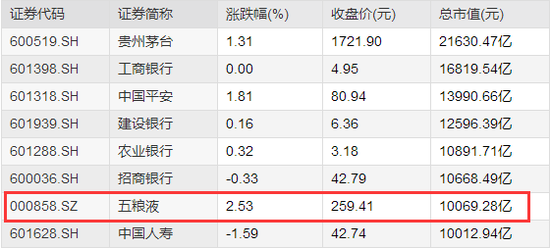 沪深市值老大是“两瓶酒”!五粮液跻身深市首只万亿股,茅台稳居一哥位置